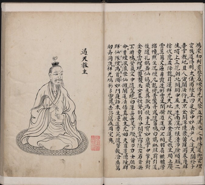此清代墨绘本分上下两卷,描绘著名神魔小说《封神演义》其中五十五名主要人物(含太上老君、元始天尊、通天教主、南极仙、接引菩萨、燃灯道人、周文王、妲己、李靖、哪吒、杨戬、雷震子、土行孙、赵公明、申公豹等),绘制十分精美,人物造型生动,线条流畅。