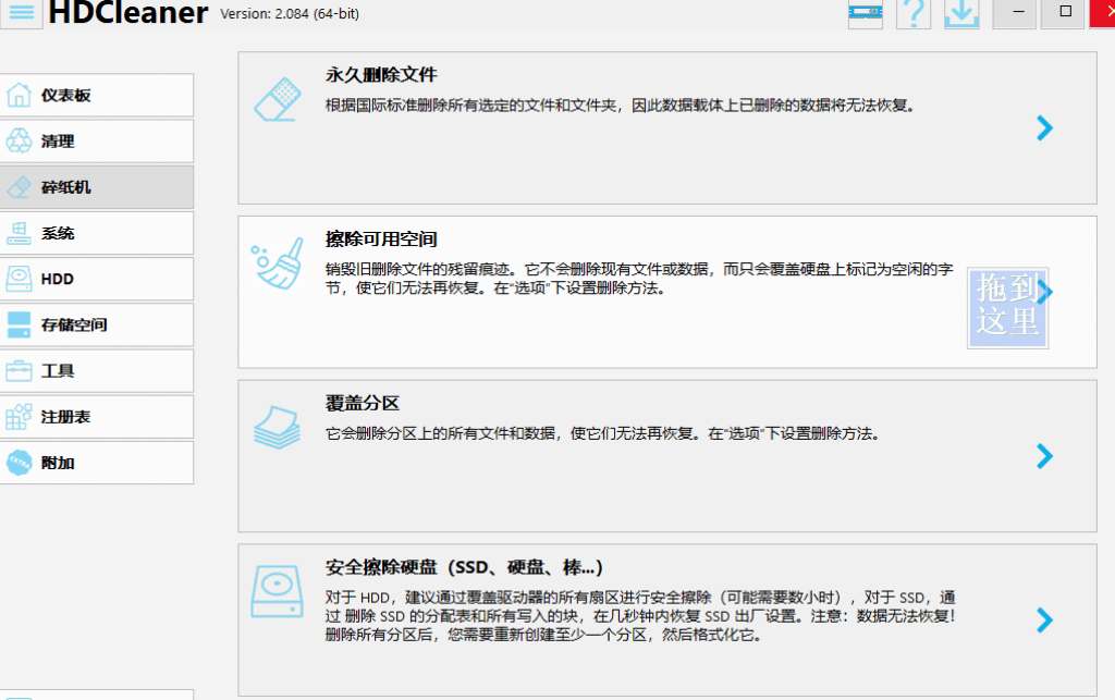 - 永久删除文件,擦除可用空间,不可恢复。