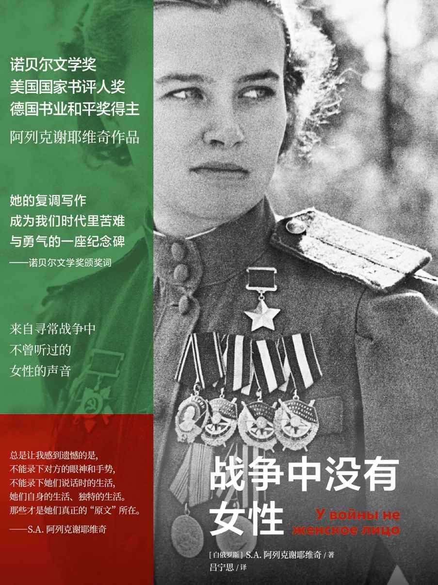 第二次世界大战期间,苏联有超过一百万女性参战。她们是15-30岁的年轻女孩,却担任起被视为“男人的岗位”的职责,她们是医生、狙击手、坦克手步兵、冲锋枪手……本书是一本二战时苏联女兵和女性医护人员等的回忆录。她们眼里的战争,为我们带来了一个全然不同的视角,也是从未有过的冲击和震撼。