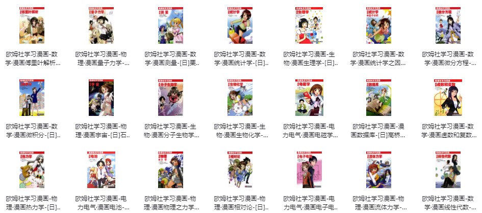 半导体、电池、电气、数学、电子、电路、分子、生物学、量子力学、流体力学、密码、热力学等漫画电学原理,总计31册,非常棒,喜欢的可以转存到自己的网盘里好好学习~~@高原下